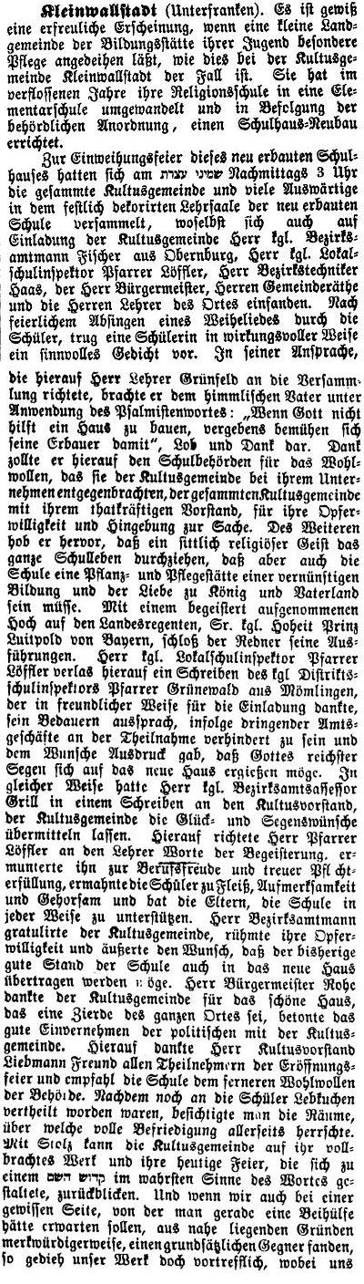 jüdischen Schulhauses in Kleinwallstadt 1899 wurde der Wunsch nach einem