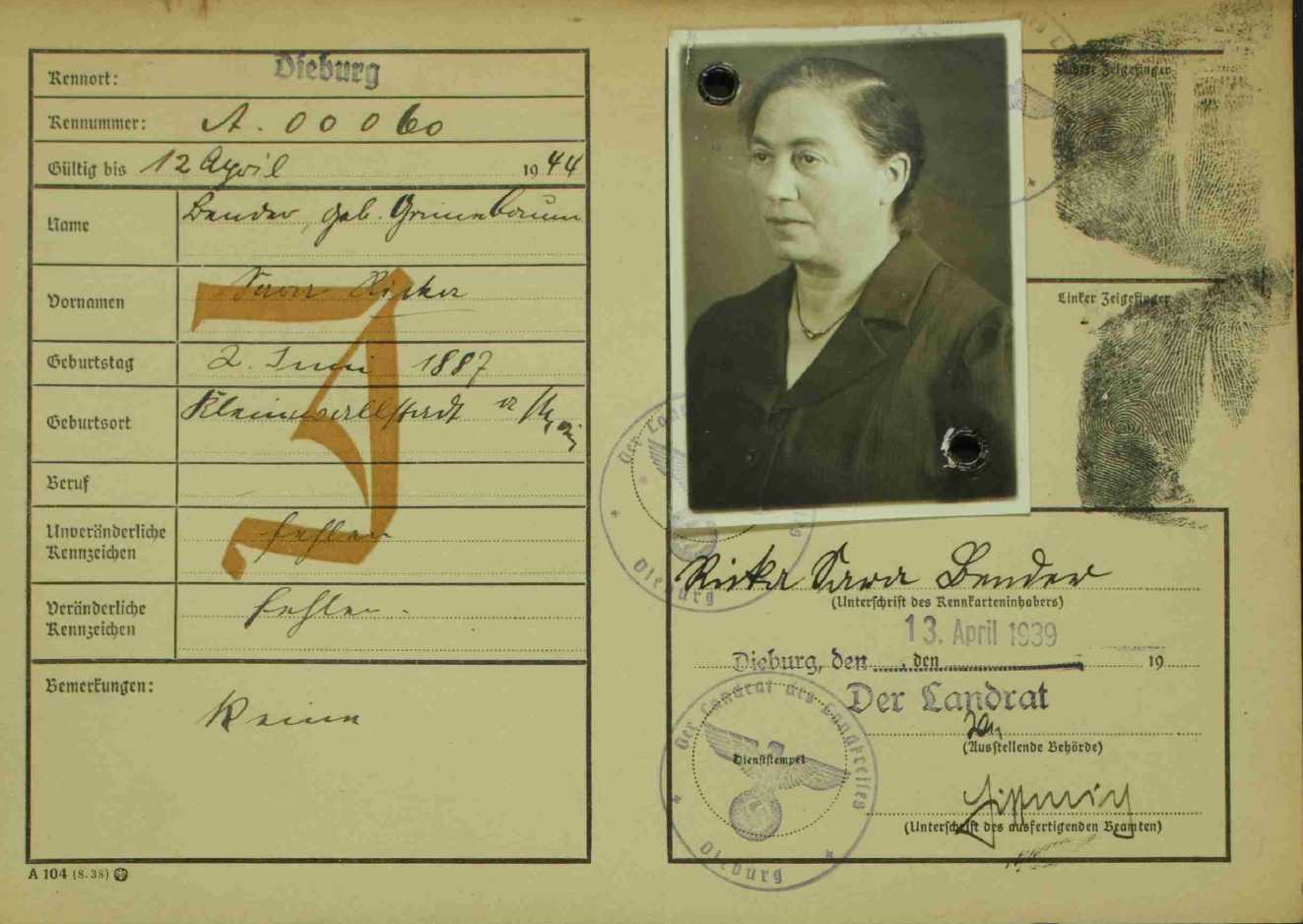 Grünebaum (1883, vgl. Kennkarte unten)), Jenni Wertheim geb. Oppenheim (1879).