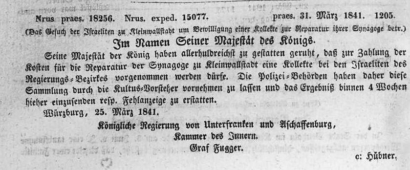 wird erstmals ein Jude aus Kleinwallstadt genannt.