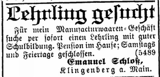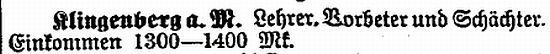 Klingenberg. Um 1897/99 war er Lehrer Grünfeld aus Kleinwallstadt, der den