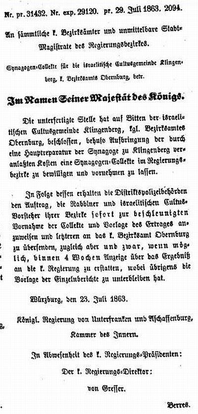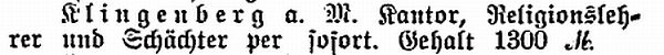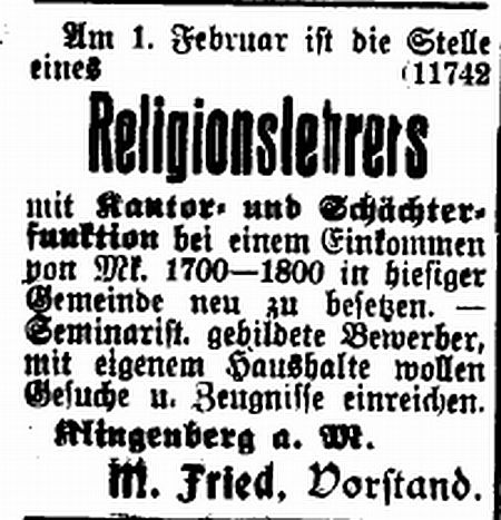 jüdischen Kindern in Klingenberg den Religionsunterricht erteilte. Um 1900 bestand ein "Schulsprengel" der jüdischen