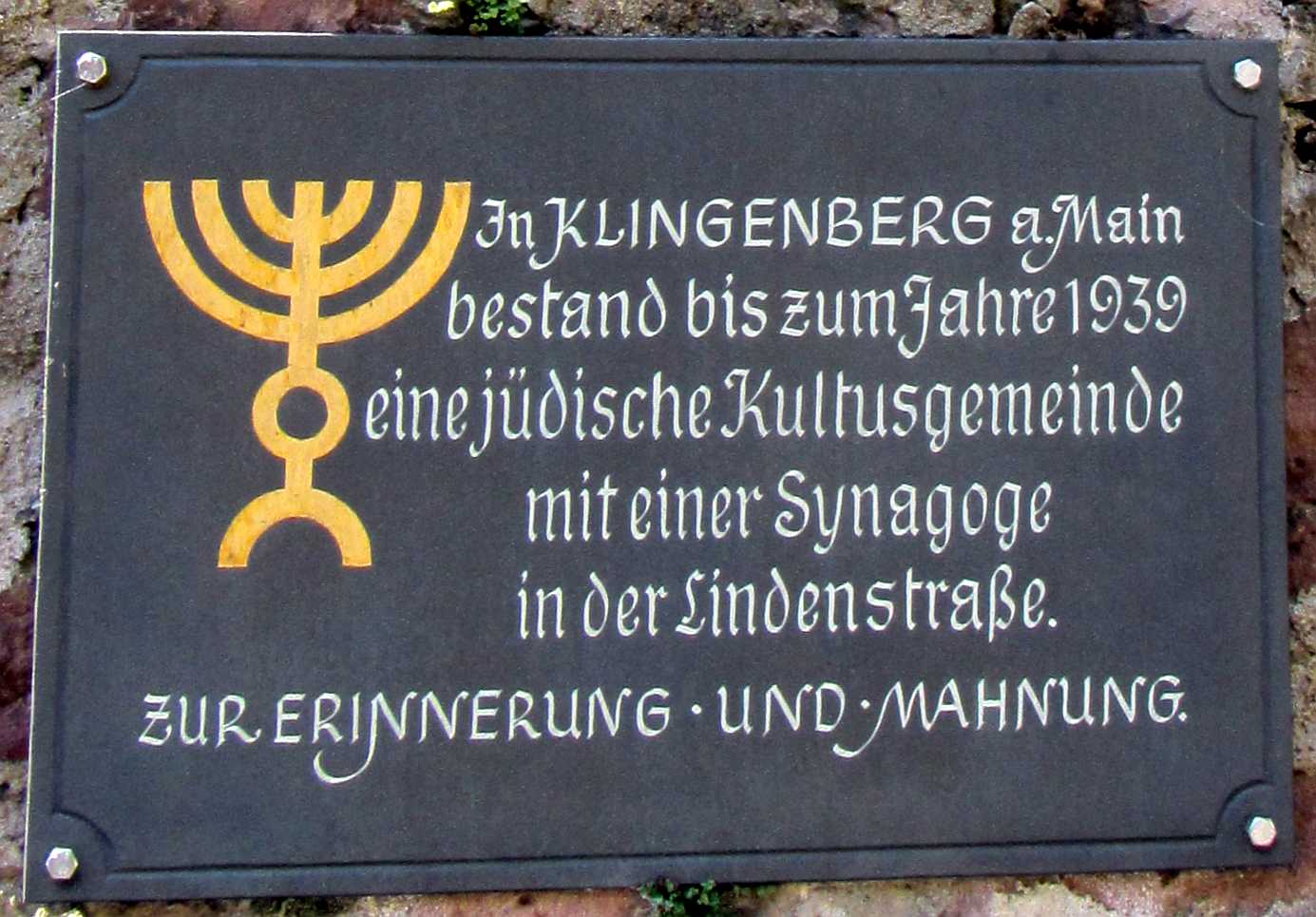 bisherige Erinnerungstafel mit der Inschrift: "In Klingenberg a. Main