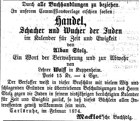 bis ca. 1871), Levi Wolff (Wolf; 1873 - 1876), Nathan Billigheimer (ca. 1875 -