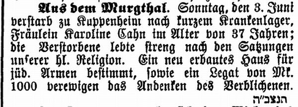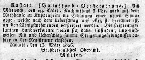 Markgrafschaft Baden-Baden gehörenden Kuppenheim bestand eine jüdische