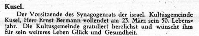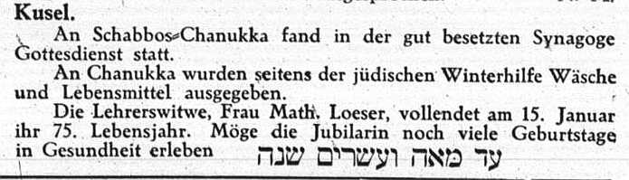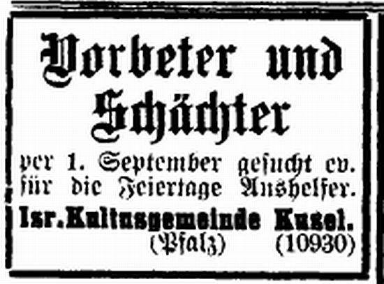 after the Nazi assumption of power, 56 Jews were living in Kusel. Their prayer