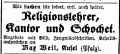 Ausschreibungen der Stelle des Religionslehrers / Vorbeters / Schochet