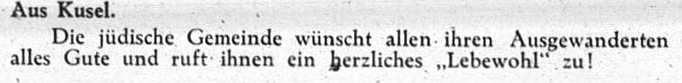 Jews from Kusel managed to emigrate to safe havens, and about 30 moved to other