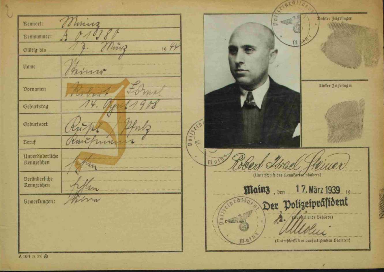 geb. August (1869), Artur Anselm Maximilian Steiner (1877, vgl. Kennkarte unten), Robert Steiner