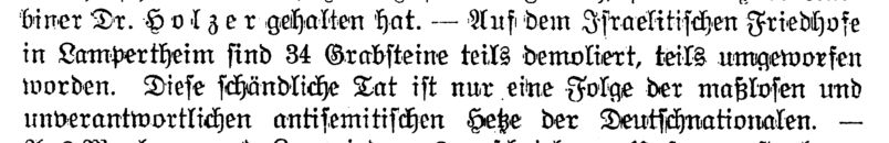 Juni 1920 berichtet. Damals wurden 34 Grabsteine teils demoliert, teils