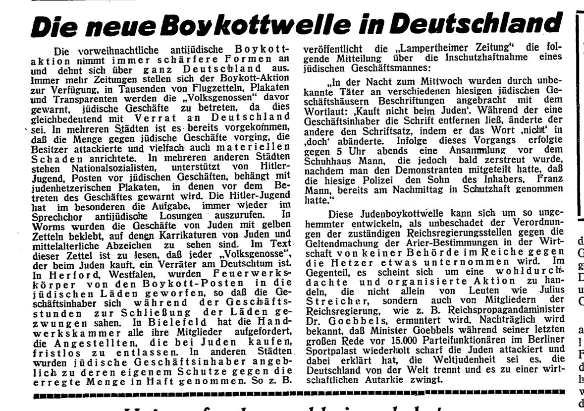Dazu berichtete die Zeitschrift "Der Israelit"
