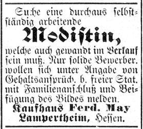 Alter von 32 Jahren das Kaufhaus May in der Wilhelmstraße 79, heiratete