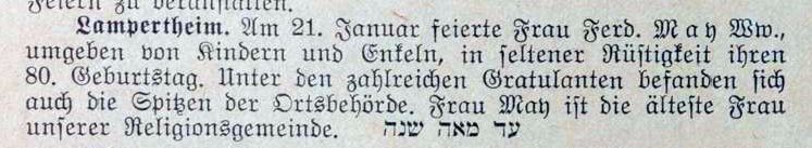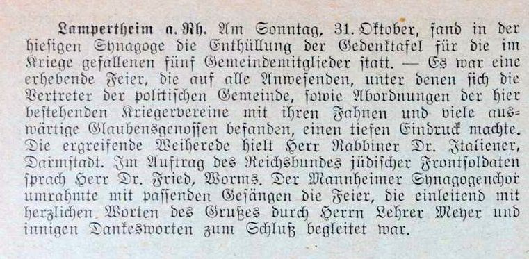 am 11. Dezember 1914 in der Zeitschrift "Der Israelit" zu lesen: "Lampertheim. Theodor Süß, Sohn des