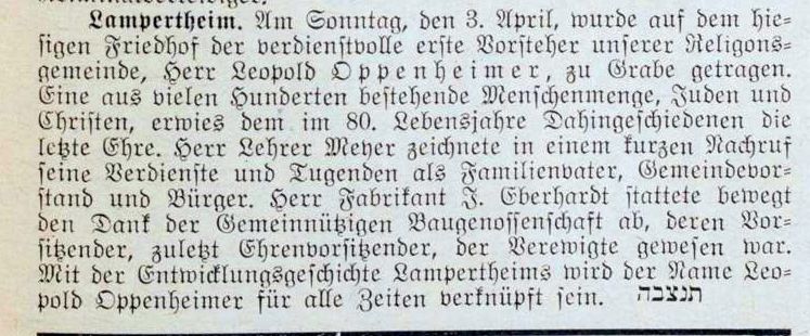 Von den Gemeindevorstehern werden genannt: Leopold Oppenheimer (gest.