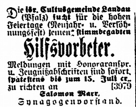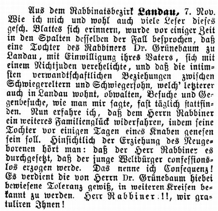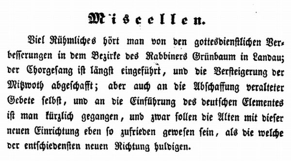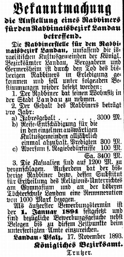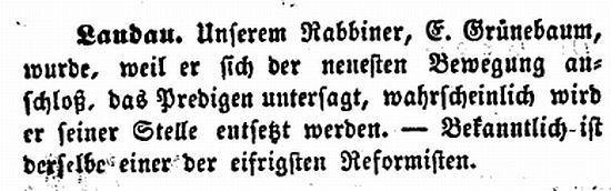 angestellt. Seit 1838 war Landau Sitz eines Bezirksrabbinates für die in