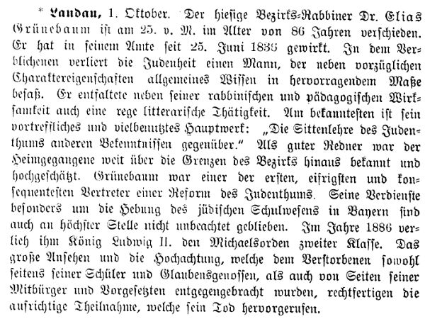 Gemeinden. Als Bezirksrabbiner wirkten Dr. Elias Grünebaum (1838-1893), Dr.
