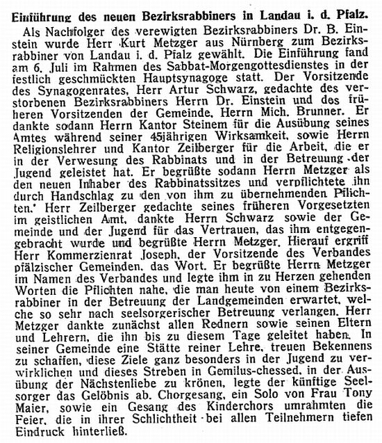 Berthold Einstein (1893-1934) sowie Kurt Metzger (1935-1938).