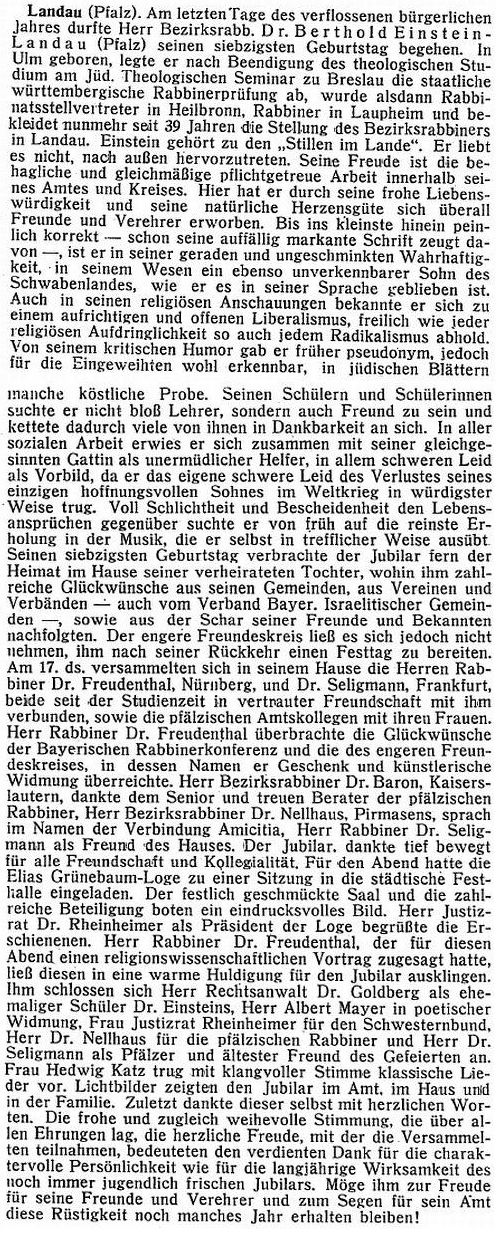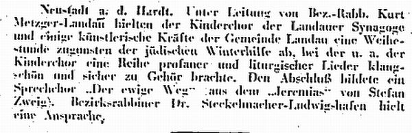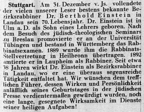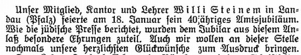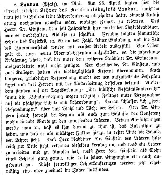 Stadt erteilten Lehrer Steinem und Rabbiner Dr. Einstein. An jüdischen Vereinen