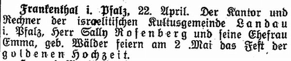 (wohnt Glacisstr. 30), als 2. Kantor und Rechner Salli Rosenberg tätig.