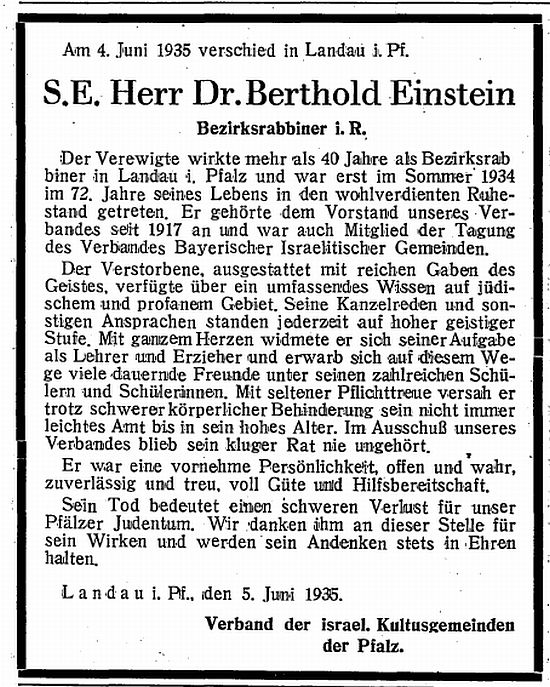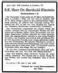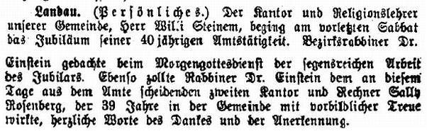 genannte Dr. Berthold Einstein (wohnt Glacisstr. 9), als 1. Kantor Willi Steinem