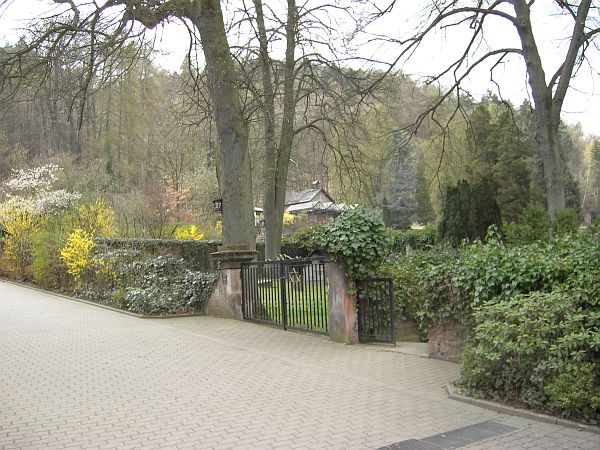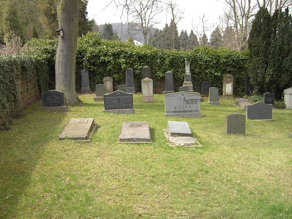 Gemeindefriedhofes (Kaiserstraße 100/Friedhofstraße), von einer Mauer abgetrennt.