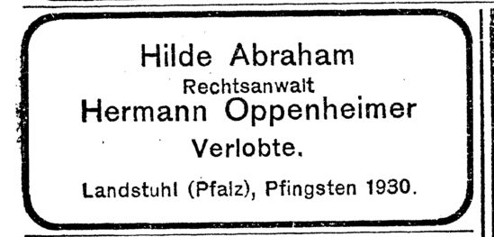 Abraham. Am 27. Juli 1938 heiratete Emilie Reinheimer noch in