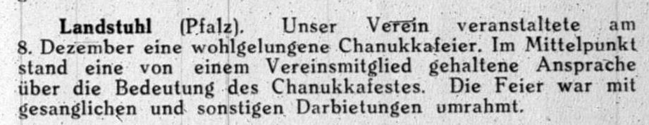 Landstuhl. Im Jahr 1924 lebten ca. 80 Personen jüdischen Glaubens in der