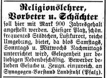 angestellt, der zugleich als Vorbeter und Schochet tätig war (siehe