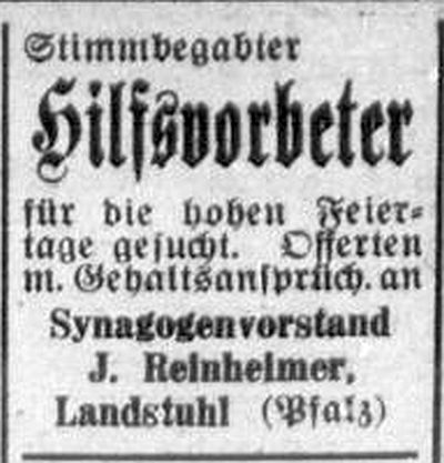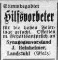 Hohen Feiertagen im Herbst wurde ein Hilfsvorbeter angestellt.