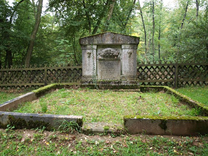 Auffallend ist die aufwändiger und größer gestaltete Grabstätte der