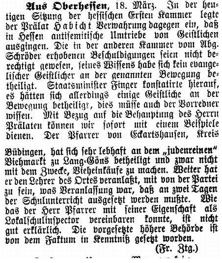 Auf Grund der großen Erfolge der Antisemiten in Langgöns und Umgebung am Ende