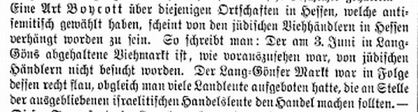 lebhaft an dem 'judenreinen' Viehmarkt zu Lang-Göns beteiligt und