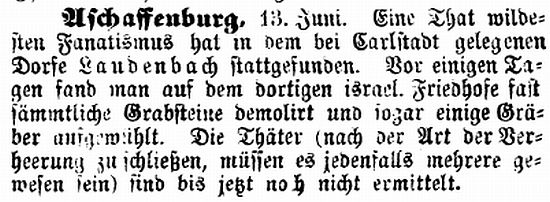 in der Zeitschrift "Der Israelit" vom 21. Juni 1865: "Aschaffenburg,