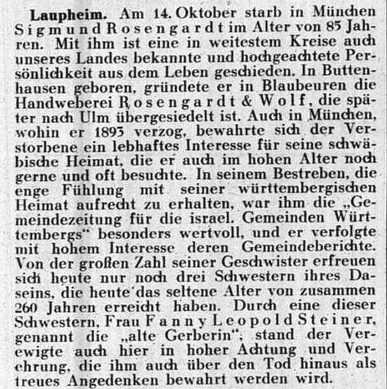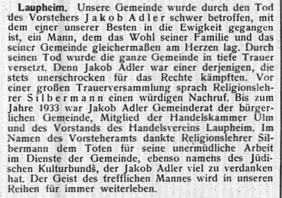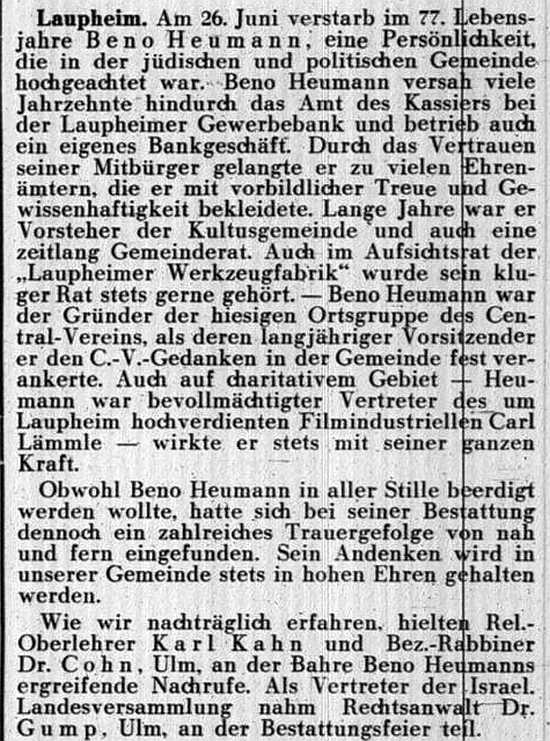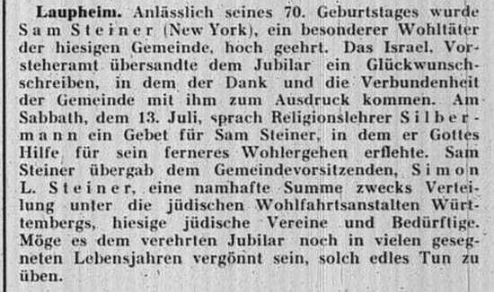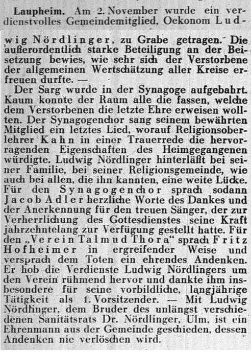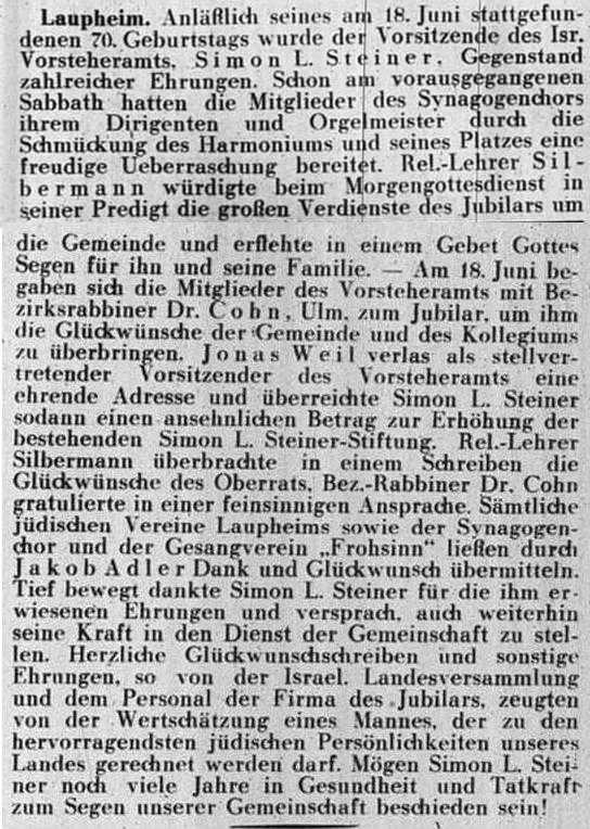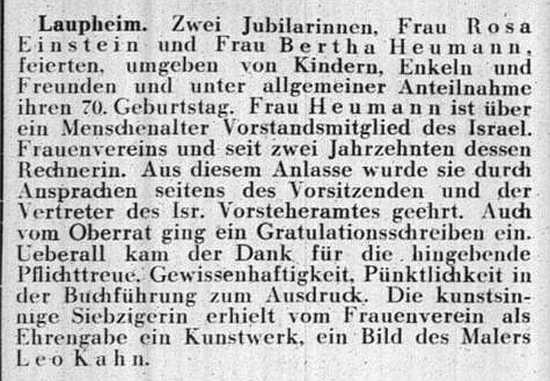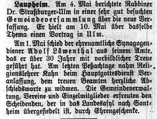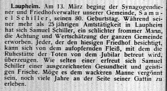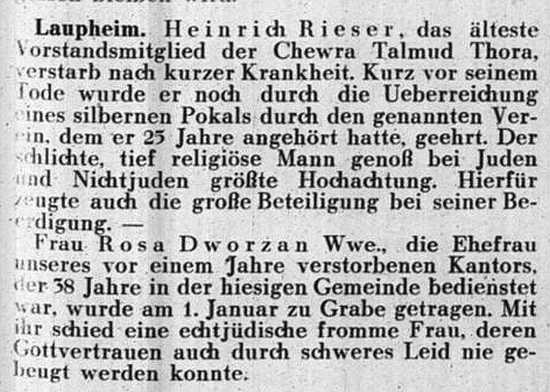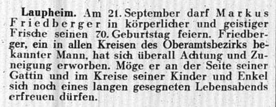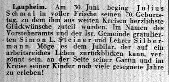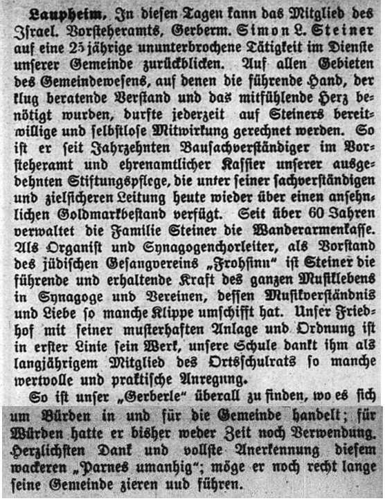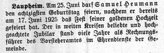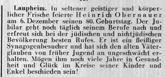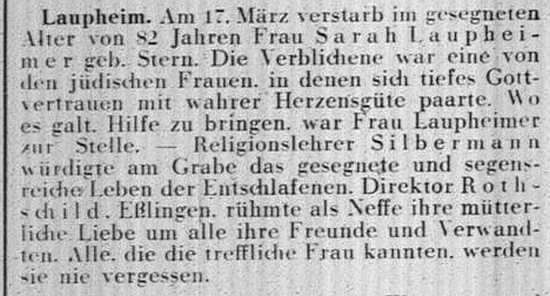 jüdischen Gemeinde Laupheim; er war verheiratet mit Pauline, geb. Kohn. Das Ehepaar hatte