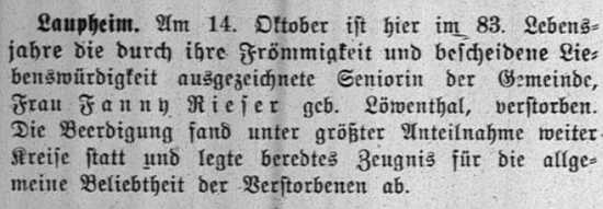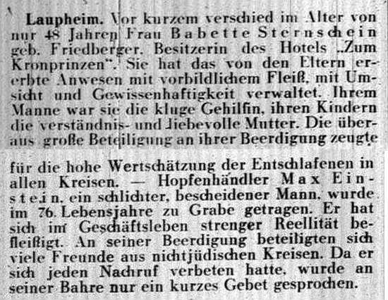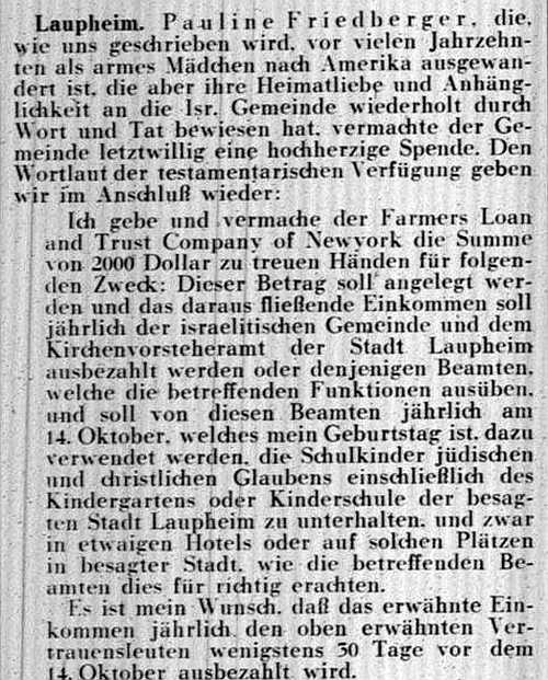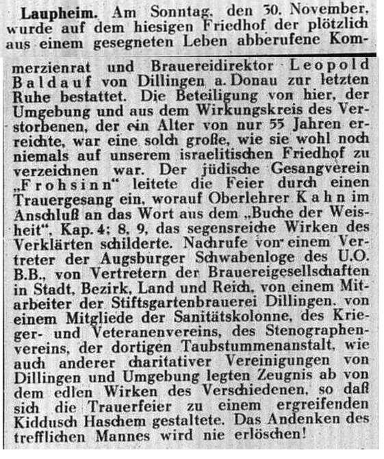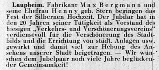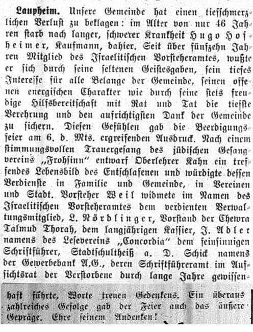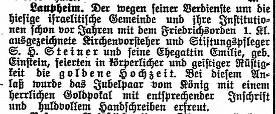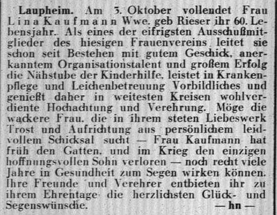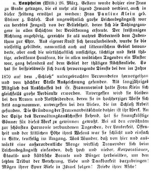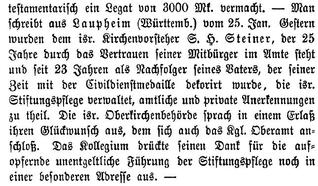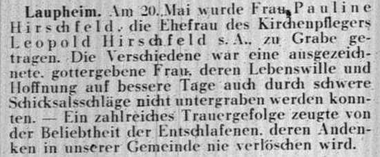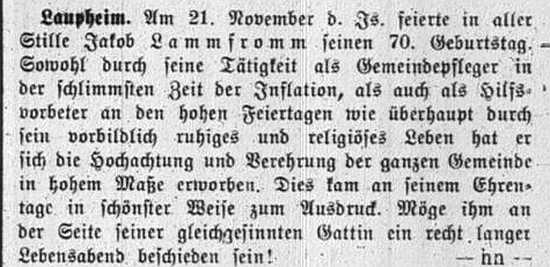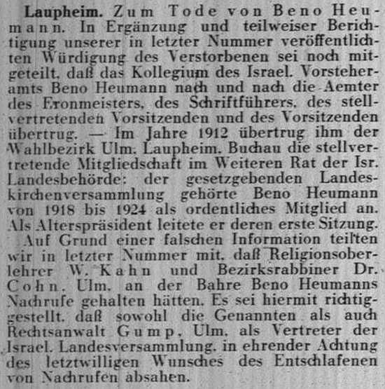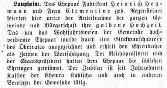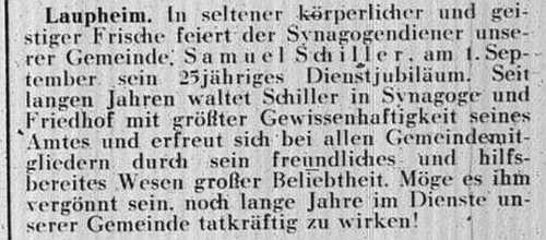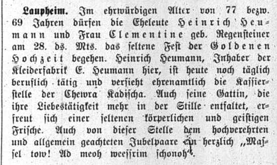 jüdischen Gemeinde Laupheim; er war verheiratet mit Pauline, geb. Kohn. Das Ehepaar hatte