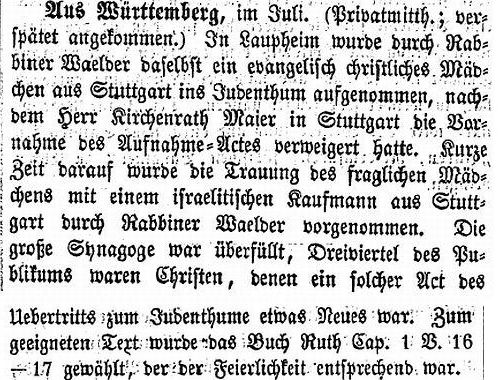 israelitischen Kaufmann aus Stuttgart durch Rabbiner Wälder vorgenommen.