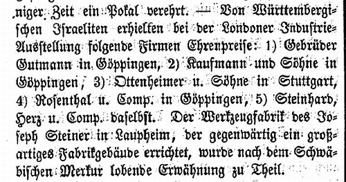 Söhne in Stuttgart, 4) Rosenthal und Comp. in Göppingen, 5) Steinhard,