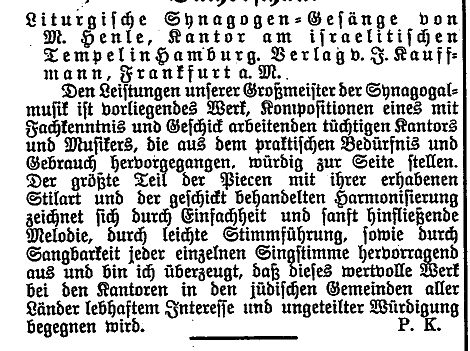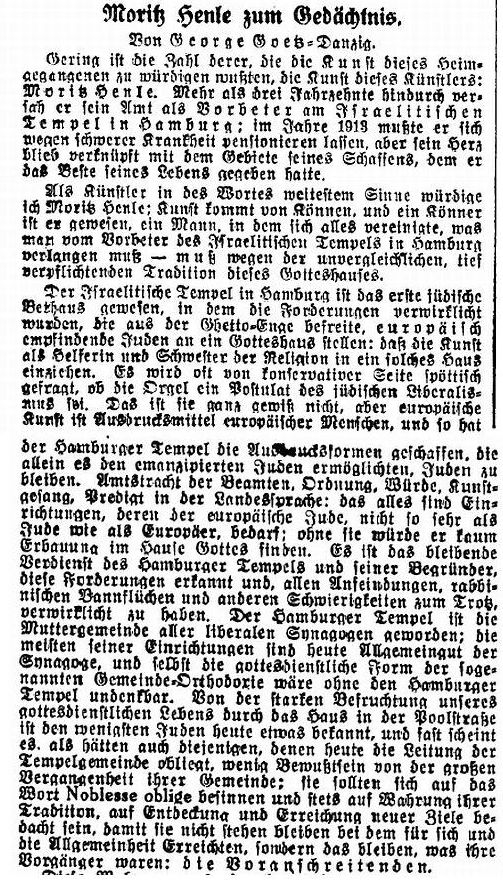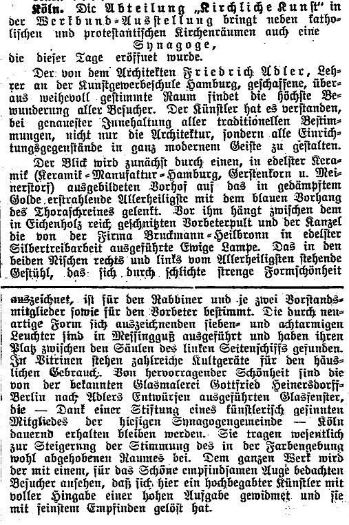 Artikel in der "Allgemeinen Zeitung des Judentums"