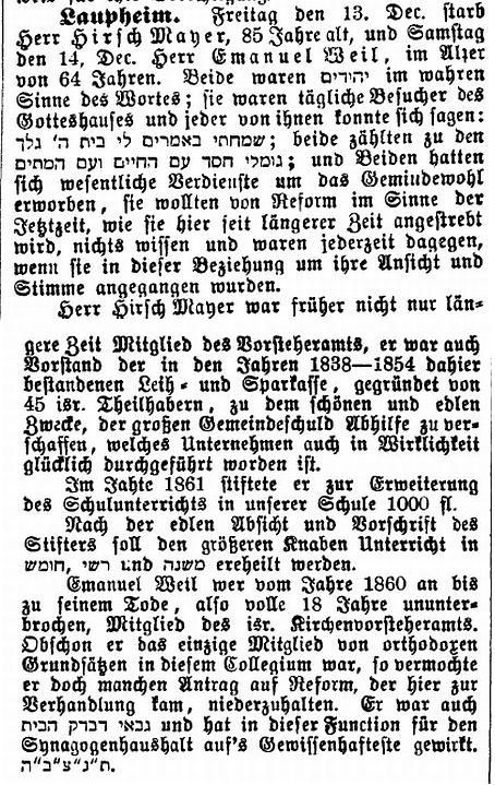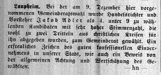 September 1878) war Rechtsanwalt, Gemeinderat und israelitischer Kirchenvorsteher in der