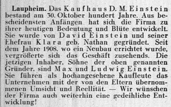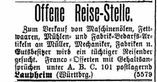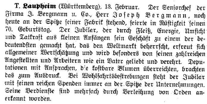 aus Diedelsheim zugezogen, gest. in Laupheim 1928). Die Firma produzierte