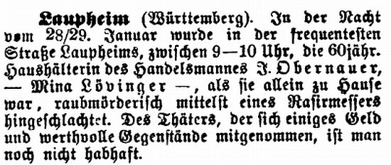 vom 10. Dezember 1861: "Laupheim (Württemberg), 27.