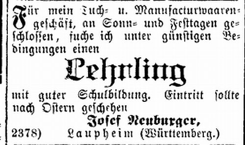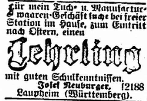 Josef Neuburger, Laupheim (Württemberg)." |