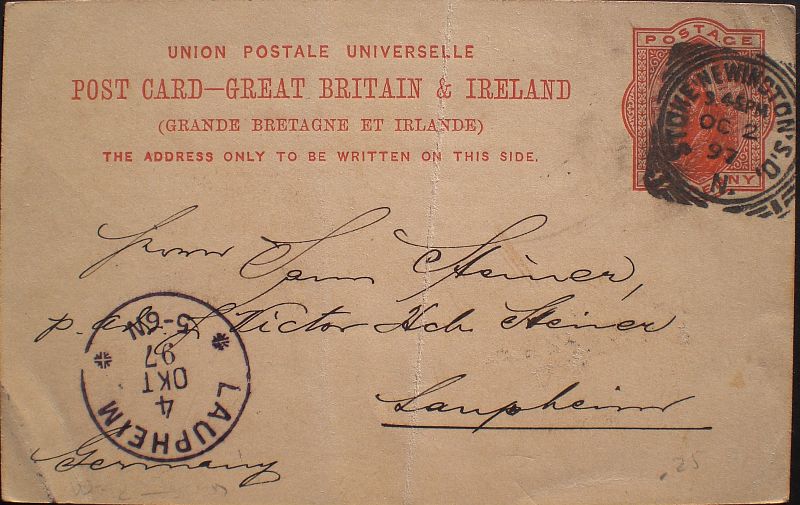 Oktober 1897 datierte Karte wurde von Stoke Newington (Londoner