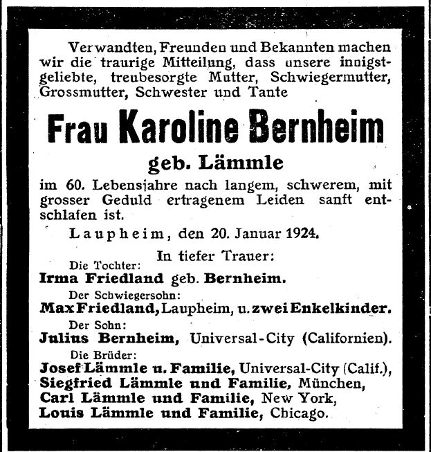 Oktober 1820, gest. 10. Juli 1892) war der Vater des berühmten "Carl Laemmle"