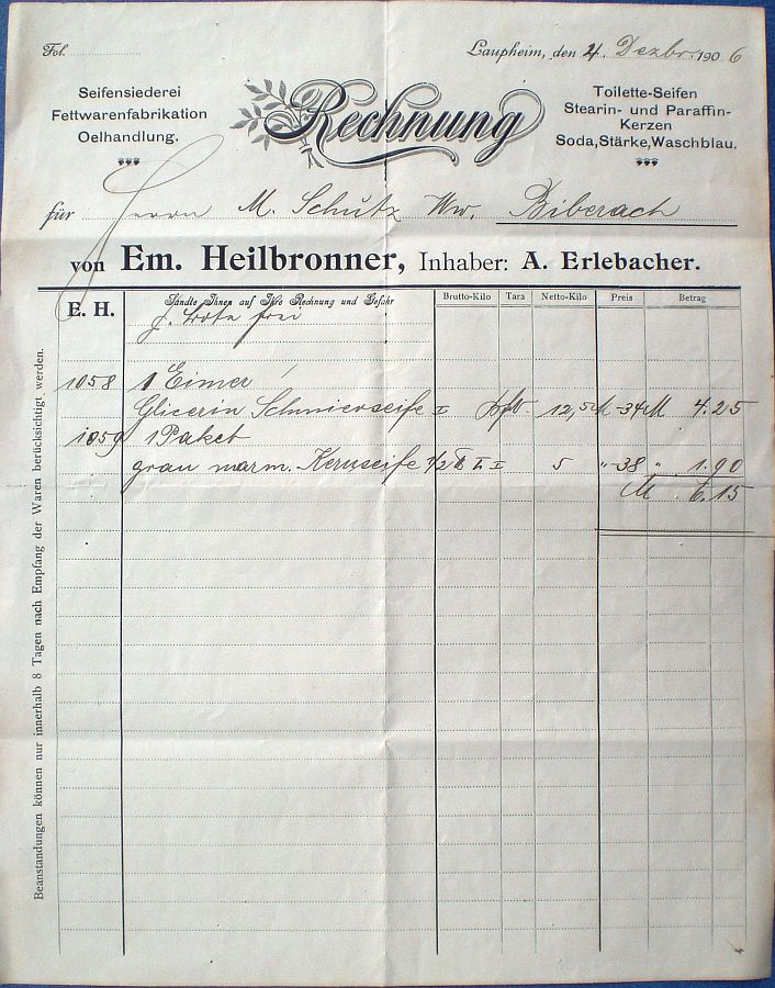 Em. Heilbronner, Inh. A. Erlebacher (1906) |