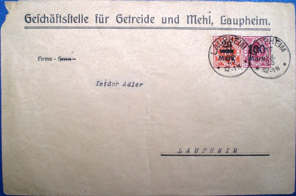 Adler - wurde am 17. Juli 1923 abgestempelt. Bei der Fa. Isidor Adler handelte