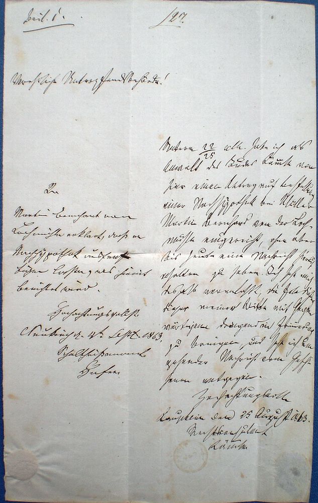 Der oben abgebildete Brief handelt von