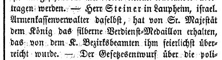 für den Armenkassenverwalter Heinrich Steiner (1861)