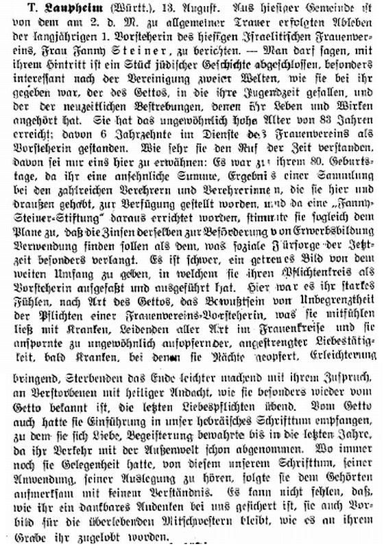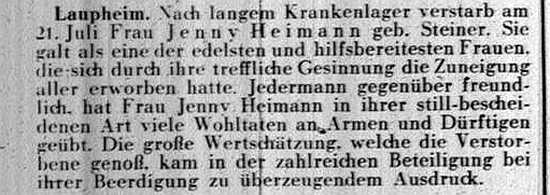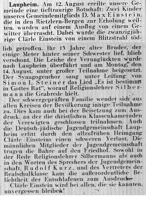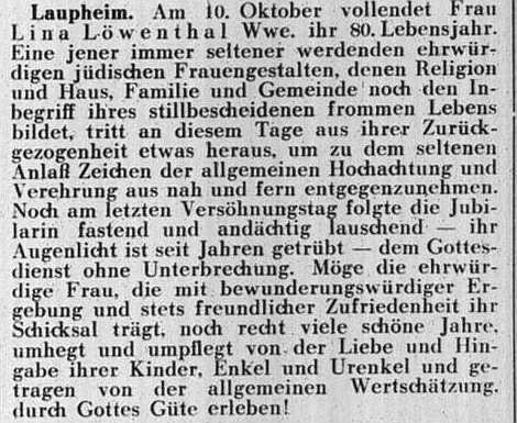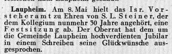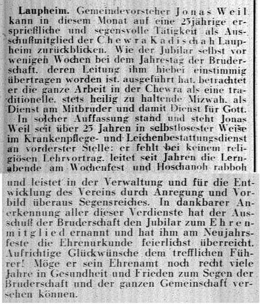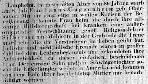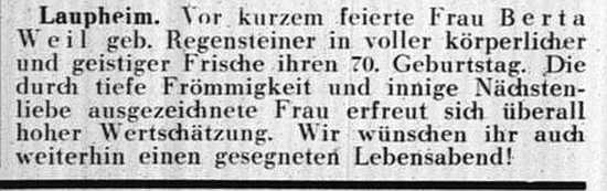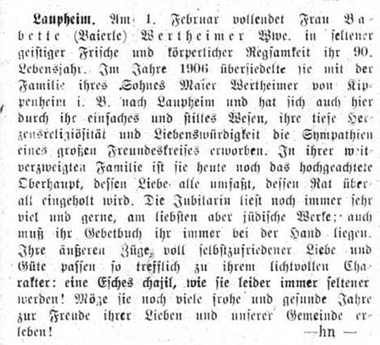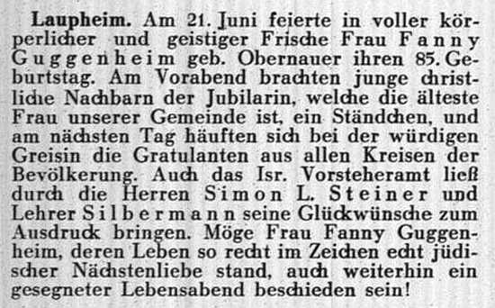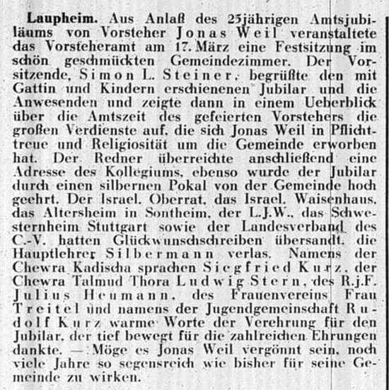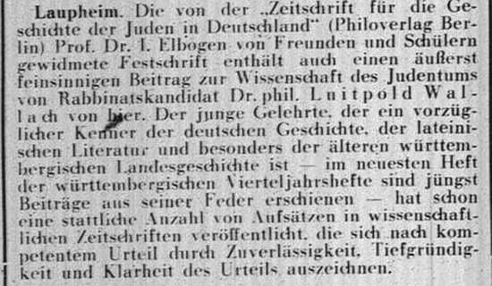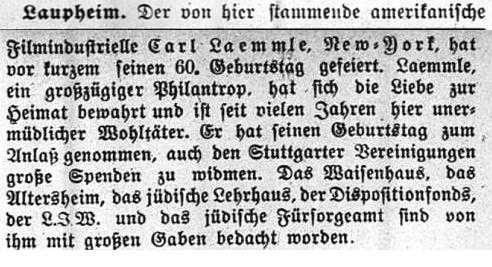 Beiträgen zur jüdischen Geschichte in Laupheim wurden in jüdischen Periodika