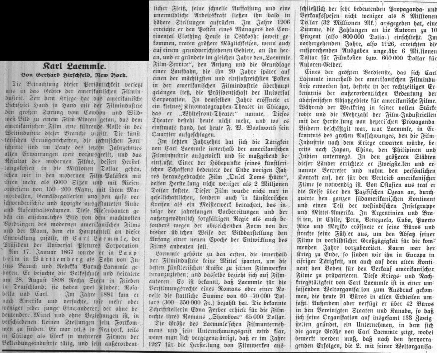 Literatur: Udo Bayer: Carl Laemmle und die Universal. Eine