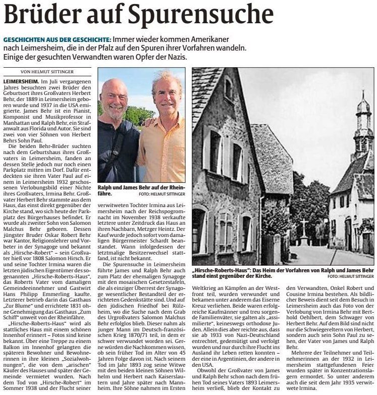 Zum Lesen der Artikels (mit zwei Fotos zu Leimersheim/Familie Behr) bitte